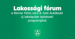 Lakossági fórum a Rómer Flóris utca 8-hoz (volt Autóklub) kapcsolódó új lakóépület építészeti programjáról.A fórum időpontja: FEBRUÁR 12., 17.00, helyszíne: a II. Kerületi Polgármesteri Hivatal Házasságkötő terme. Mindenkit szeretettel várunk!