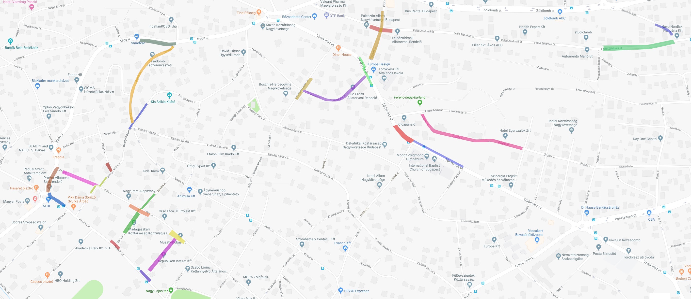 2023. január elején a sok éve tervezett új fizető övezet létrehozásával, illetve a korábban már létező várakozási övezetek miatt a parkolási terhelés egy része áttevődött az övezet határával párhuzamos területekre. Ezért elhatároztuk, hogy az övezethatár környékén lévő utcákban egyedileg történik majd a lakosság számára fenntartott parkolóhelyek kijelölése. A szükséges forgalomtechnikai tervek elkészültek, majd azokat az illetékes közútkezelő engedélyezte.