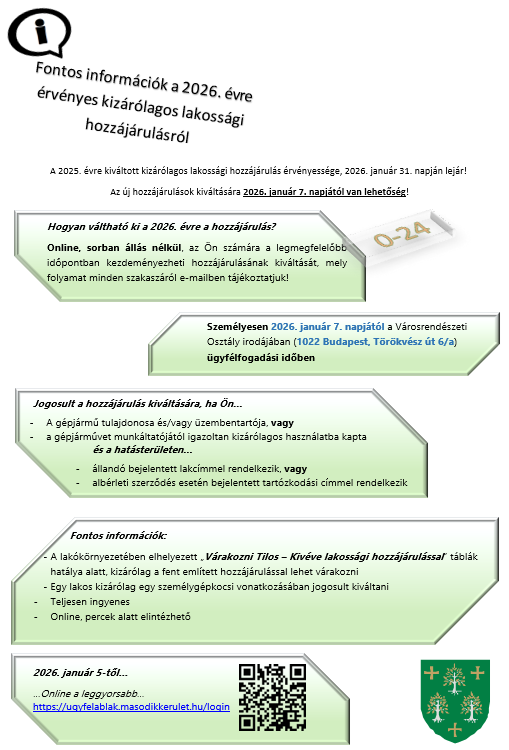 A 2025. évre kiváltott kizárólagos lakossági hozzájárulások érvényessége 2026. január 31. napján lejár! Az új hozzájárulások kiváltására online 2026. január 6. napjától van lehetőség!